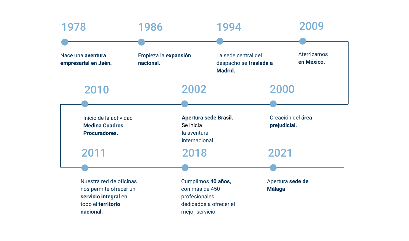 Gracias al trabajo duro, al esfuerzo constante y, sobre todo, al sabernos rodear del mejor talento, lo que era un sueño ha terminado en convertirse en una gran realidad. Hoy día, Medina Cuadros es un referente en el asesoramiento jurídico integral de empresas y particulares.