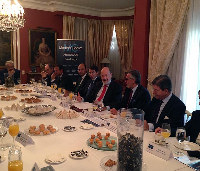 En medio de un ambiente acogedor, como es habitual en estos desayunos, y con una gran convocatoria donde se encontraban cargos políticos, empresarios y directores generales de las empresas más representativas de nuestro país, comenzó el acto alrededor de una mesa, donde Raúl Rodríguez, director de Relaciones Institucionales de Medina Cuadros, presentó al Excmo. Sr. Dr. D. José María Gil-Robles y Gil-Delgado, una persona que ha dedicado gran parte de su vida profesional al desempeño de la función pública, fundamentalmente como eurodiputado desde 1989 y 2004, siendo elegido Presidente del Parlamento Europeo en 1997, cargo que desempeñó hasta 1999.