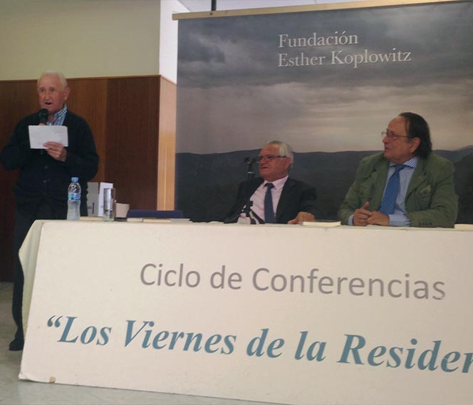 Enrique Revuelta, patrono de la Fundación Esther Koplowitz y organizador de estos ciclos de conferencias, fue el encargado de introducir a Manuel Medina ante la expectante mirada de los residentes que llenaban el salón de actos de la residencia Amavir Nuestra Casa.